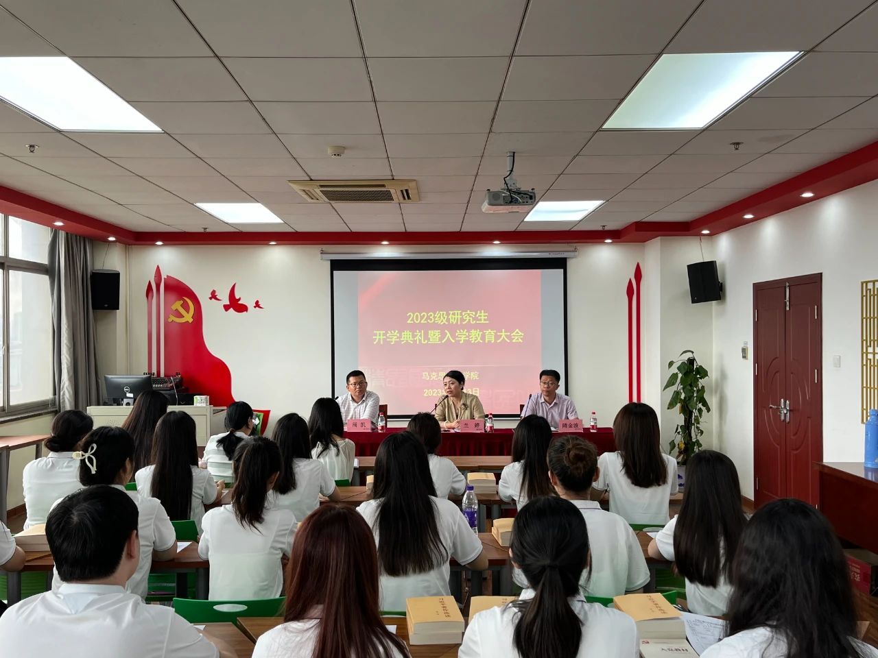 鲜衣怒马少年时,不负韶华行且知。9月13日下午2点,马克思主义学院在图书馆七楼学术沙龙室召开2023级研究生新生开学典礼暨入学教育大会。学院党委书记兰婷、副院长隋金波、党委副书记周凯出席典礼,新生班主任周希炜、培养秘书聂庆艳、2023级全体研究生参加典礼,典礼由辅导员李天竹主持。