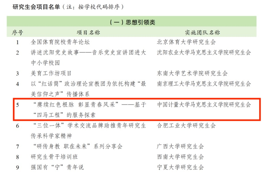 1月27日,全国学联公布《“我为同学做实事”项目交流展示活动名单》。该项目由共青团中央指导、全国学联主办、贵州省学联承办,经学校自荐、省级推报、全国遴选,共产生研究生会项目62个,我院研究生会《“赓续红色根脉 彰显青春风采”——基于“四马工程”的服务探索》,成功入选全国学联“我为同学做实事”思想引领类项目,全国仅9个!