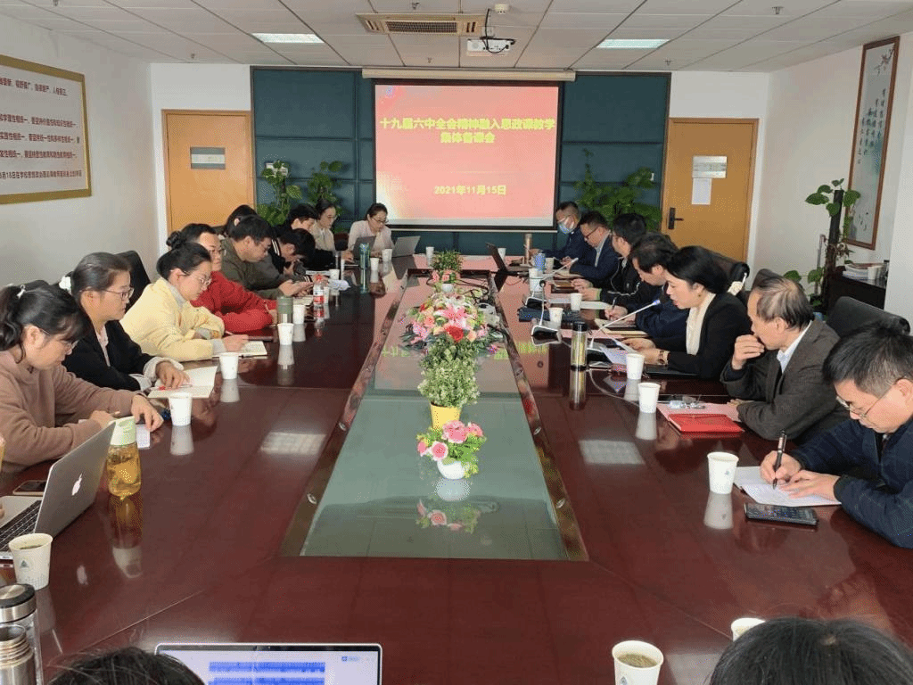 中国共产党第十九届中央委员会第六次全体会议于2021年11月8日至11日在北京举行。中央委员会总书记习近平作了重要讲话。为深入学习贯彻党的十九届六中全会精神,推动全会精神走进课堂、融入教学,提高思政课的实效性,11月15日上午,马克思主义学院在图书馆1116会议室召开“党的十九届六中全会精神融入思政课教学”集体备课会。校党委副书记程刚出席本次会议,学院党政领导、全体教师参加会议。会议由副院长隋金波主持。