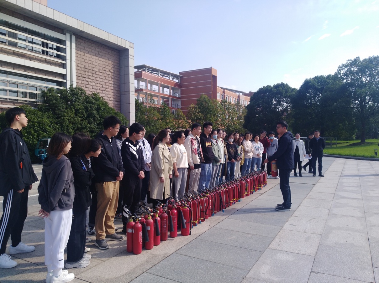 在图书馆1116,保卫处孙运有老师向大家讲解了寝室防火知识、消防电梯的使用和高层宿舍避险的注意事项。随后,孙老师组织师生进行逃生演练,学院师生安全、迅速而有序地从图书馆顶楼向地面烟雾标记处撤离。在图书馆门口广场,保卫处汤磊老师向大家讲解了灭火器的使用方法和注意事项。学院师生在老师的指导下分别使用干粉灭火器和二氧化碳灭火器进行了灭火演练。