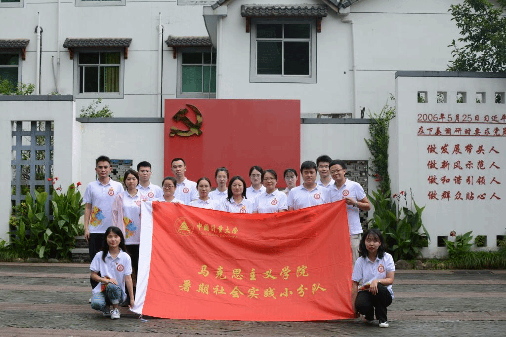 胸怀千秋伟业,恰是百年风华。为庆祝中国共产党百年华诞,积极贯彻党的十九届五中全会对共同富裕作出的重要战略部署,深入学习《中共中央 国务院关于支持浙江高质量发展建设共同富裕示范区的意见》,积极响应浙江高质量发展建设共同富裕示范区的号召,探索党建助力乡村振兴、共同富裕的实践路径,更好结合自身所学专业知识,锤炼党性修养,践行使命担当,中国计量大学马克思主义学院2020级全体研究生在4名教师带领下,于2021年6月28日赴浙江省淳安县下姜村开展以“强党富乡,逐梦下姜”为主题的暑期社会实践活动。