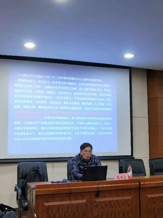 为积极推进研究生思政课教学改革,提高思政课教学效果,12月18日下午,二级教授、浙江省生态文明研究中心首席专家、浙江树人大学马克思主义学院院长周光迅教授应邀来校,为我校2020级研究生作了题为“习近平生态文明思想的理论创新”的专题报告。报告由马克思主义学院党总支书记张徐兴主持,研究生思政课任课教师和马院部分青年教师参加了报告会。
