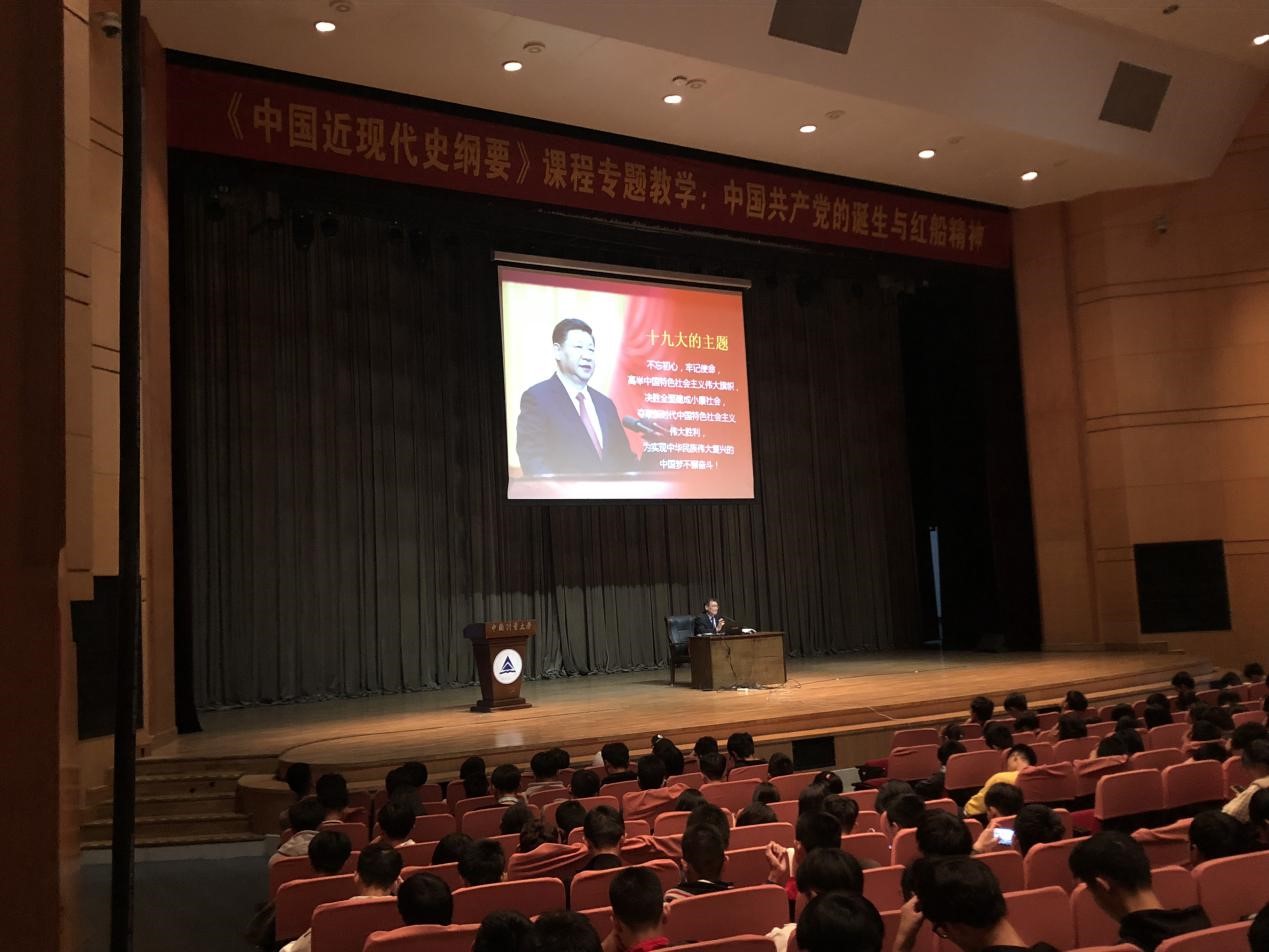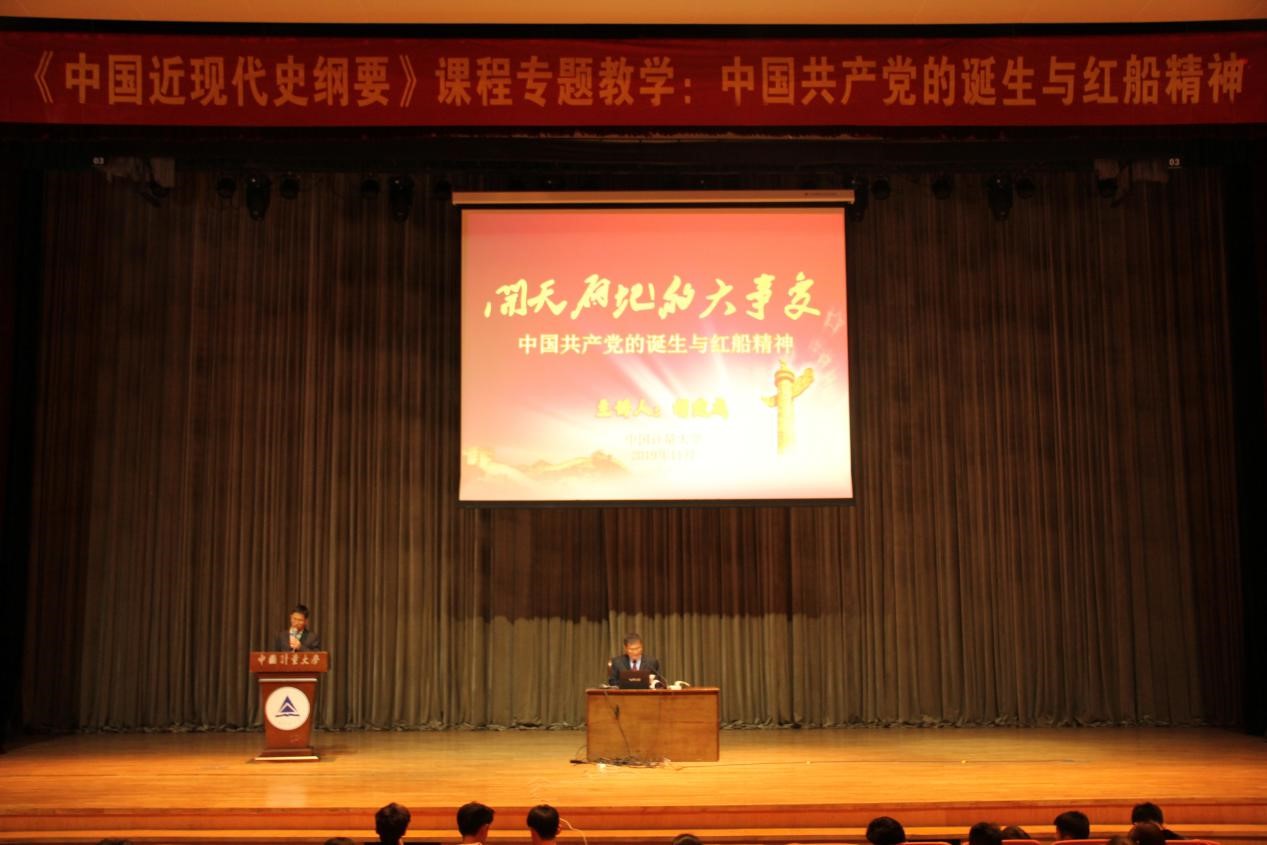 2019年11月6日下午,红船精神研究专家、教育部红船精神研究基地学术委员会副主任、中国计量大学原党委书记应马克思主义学院邀请,在嘉量大会堂为《中国近现代史纲要》课本科生作了题为“开天辟地的大事变——中国共产党的诞生与红船精神”的专题讲座。讲座由马克思主义学院党总支书记张徐兴主持。