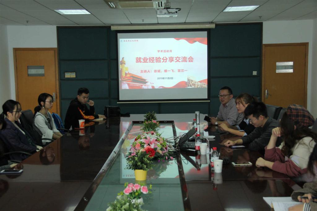 为进一步丰富2017级研究生的就业经验,提升2018、2019级研究生的职业生涯认知和规划能力,11月2日上午,马克思主义学院在图书馆1116会议室举办优秀毕业生座谈会,徐斌、楼一飞、宫兰一3位优秀毕业生分享了就业、读博等方面的经验和感悟。会议由学院党政办主任张明纲主持,马院全体研究生参加了座谈会。