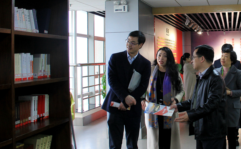 在我校马克思主义中国化研究与传播中心,调研组一行认真听取介绍、参观考察,仔细了解中心的陈设展品、运行机制、建设成果等情况,对我校创建全省首家马克思主义中国化研究与传播中心,深入推动习近平新时代中国特色社会主义思想深入人心的举措表示认可,就进一步加强中心科学管理、丰富中心藏品层次、提升中心育人实效提出建议。