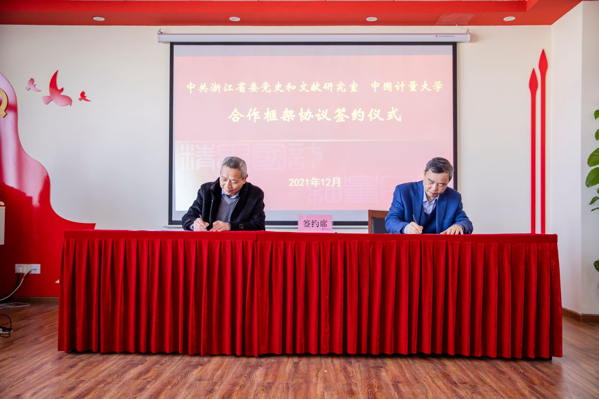 12月23日,我校与中共浙江省委党史和文献研究室合作签约仪式在马克思主义中国化研究与传播中心举行,中共浙江省委党史和文献研究室副主任、一级巡视员王祖强,我校党委副书记肖刚代表双方签约。