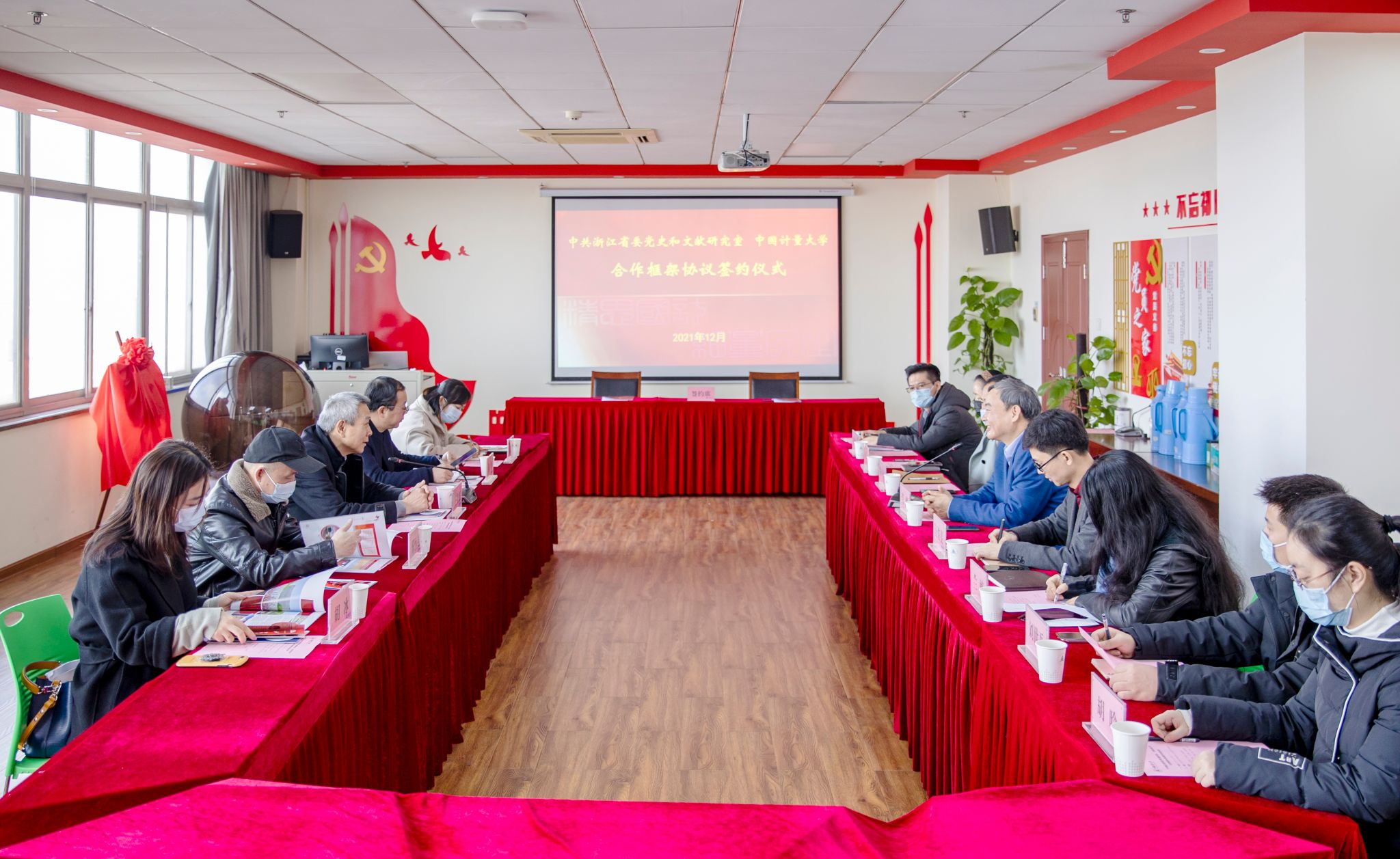 王祖强指出,省委党史和文献研究室与中国计量大学有良好的合作基础,中国计量大学是一所以计量、标准、质量、市场监管和检验检疫为办学特色的高等院校,学校可以发挥标准化、大数据分析、创新人才等资源,双方优势互补,在红色资源挖掘、红色资源数字化、红色文化传播、研究力量整合等方面深入开展合作。通过标准化手段和数字化技术,进一步深化党史学习教育成果,推进红色资源合作研究,发掘红色资源教育功能,创新红色资源传播方式,共同当好“红色根脉”的守护者、传承者。