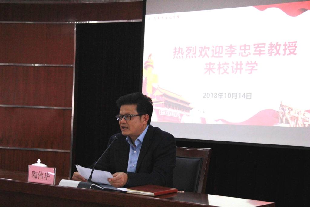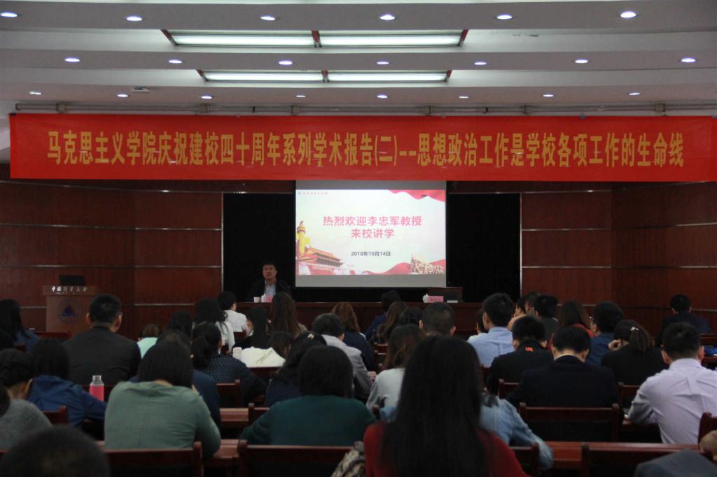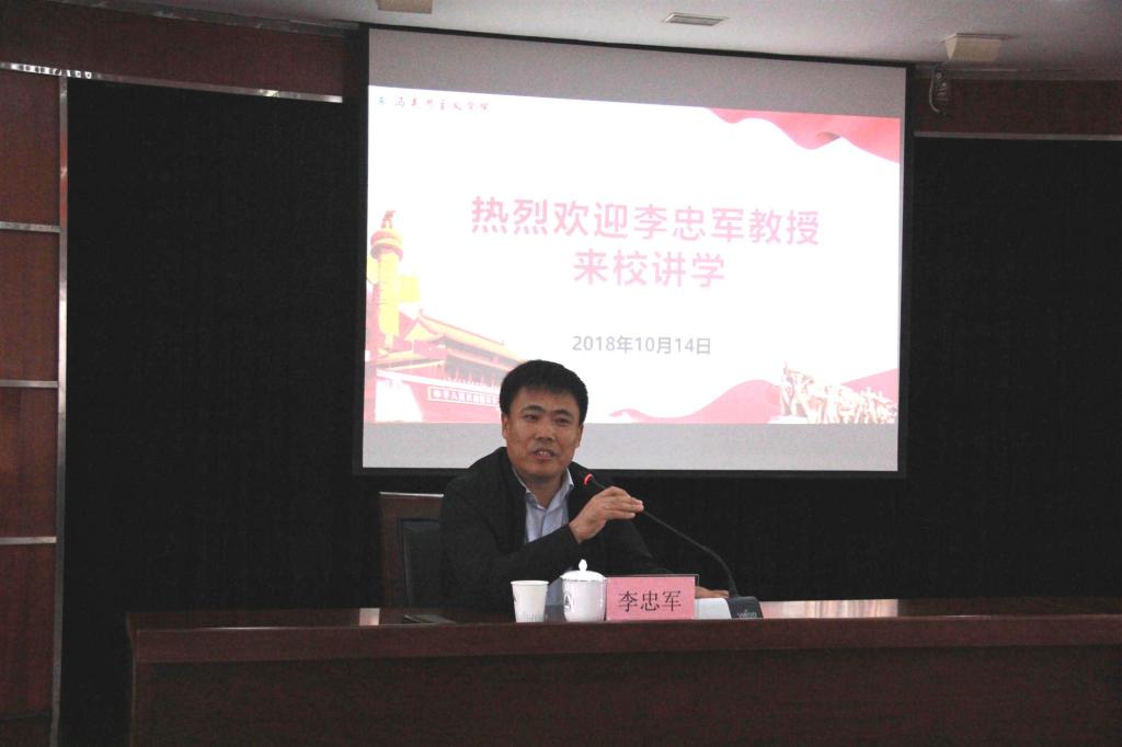 2018年10月14日,在喜迎我校四十周年校庆之际,应我校马克思主义学院邀请,吉林大学党委副书记、纪委书记李忠军教授在明德北6楼会议室做了一场题目为“思想政治工作是学校各项工作的生命线”的学术讲座。讲座由校党委副书记陶伟华主持,党委学工部部长赵蓓茁、马克思主义学院、学生处全体教师、全体辅导员,全体思政研究生参加了讲座。