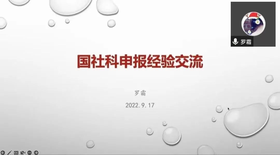 为喜迎党的二十大,庆祝学校建校44周年,按照“学术校庆、文化校庆”的理念,进一步提升学院国家社科基金申报质量,9月17日晚6点,学院青年教师促进会20余名成员相约云端参加国家社科基金培育交流会。学院国家社科基金立项者杨宁芳教授、青年博士罗霜老师结合申报经验,向与会师生作了交流分享,会议由院党委副书记周凯主持。