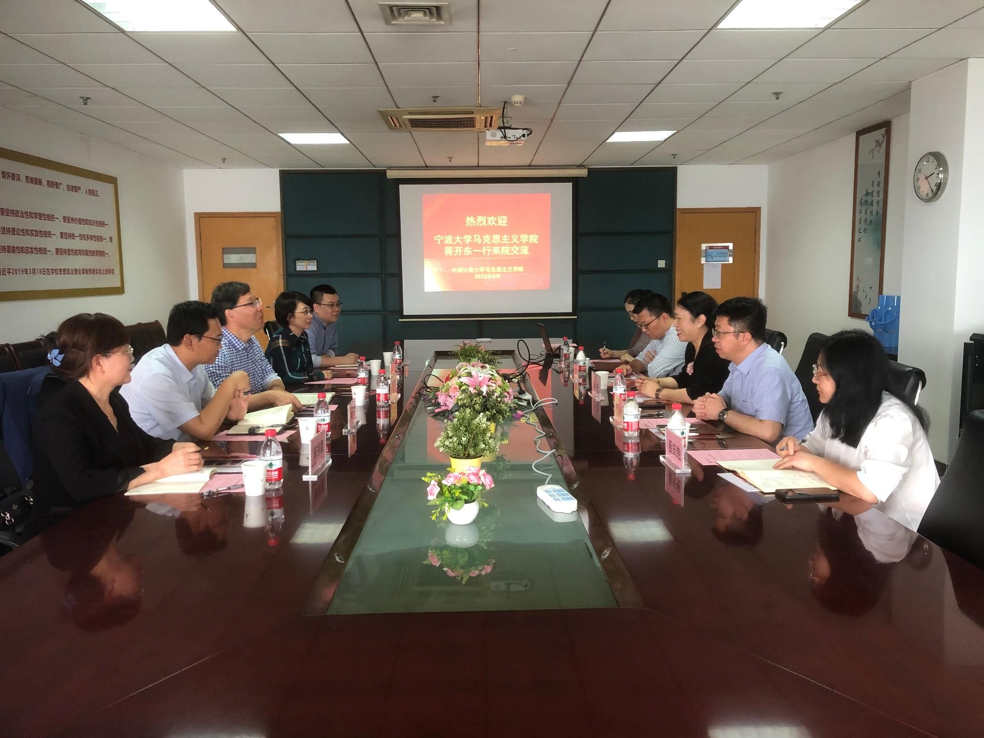 5月26日下午,宁波大学马克思主义学院党委书记蒋开东一行来我校马克思主义学院调研交流工作。马克思主义学院党委书记兰婷、副院长隋金波、副书记周凯及相关教研室负责人参加会议,会议由兰婷主持。