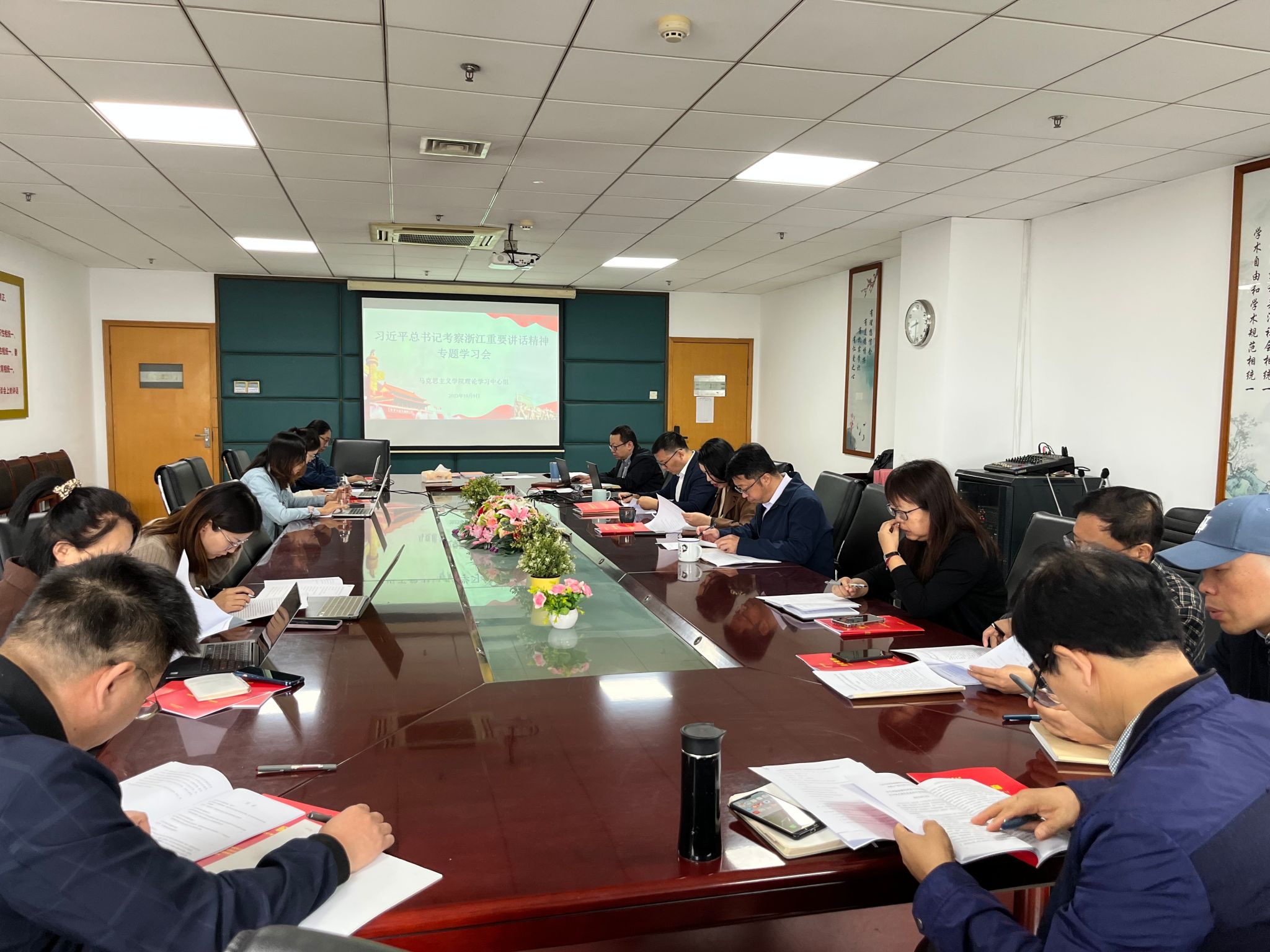 深入学习领会习近平总书记考察浙江重要讲话精神,认真传达学习省委常委会会议精神和全省领导干部会议精神,10月9日上午,马克思主义学院党委理论学习中心组召开了习近平总书记考察浙江重要讲话精神专题学习会。学院党政领导、院党委委员、纪委委员、教工党支部书记参加会议,会议由学院党委书记兰婷主持,学院副院长隋金波和德法教研室党支部书记刘博分别作主题发言。