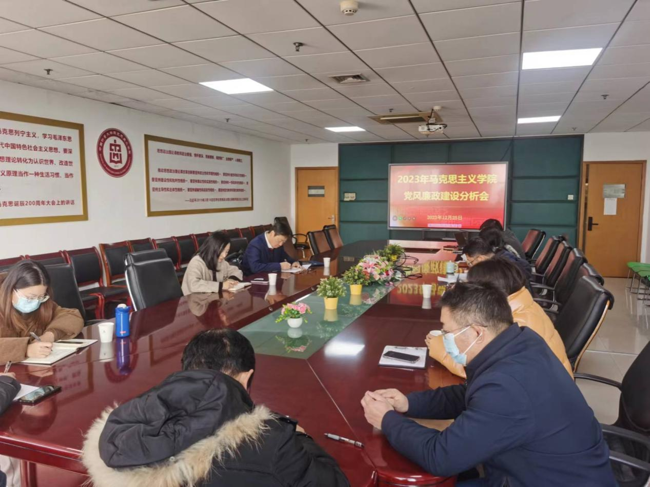 12月25日上午,马克思主义学院党委在图书馆1116会议室召开了2023年党风廉政建设分析会。学院领导班子成员、党委委员、纪委委员参加会议。校党委副书记程刚、纪检监察室副主任朱盈到会指导。