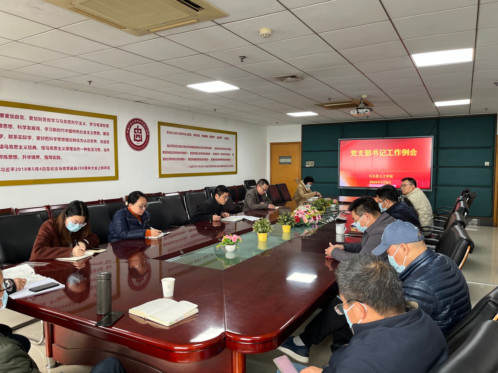 为落实《中国共产党普通高等学校基层组织工作条例》,扎实推进党支部标准化规范化建设,1月9日下午2点,马克思主义学院党委在图书馆1116会议室召开党支部书记工作例会,学院党政领导班子成员、各党支部书记参加会议,会议由学院党委书记兰婷主持,学院邀请组织部沈旭老师到会指导。