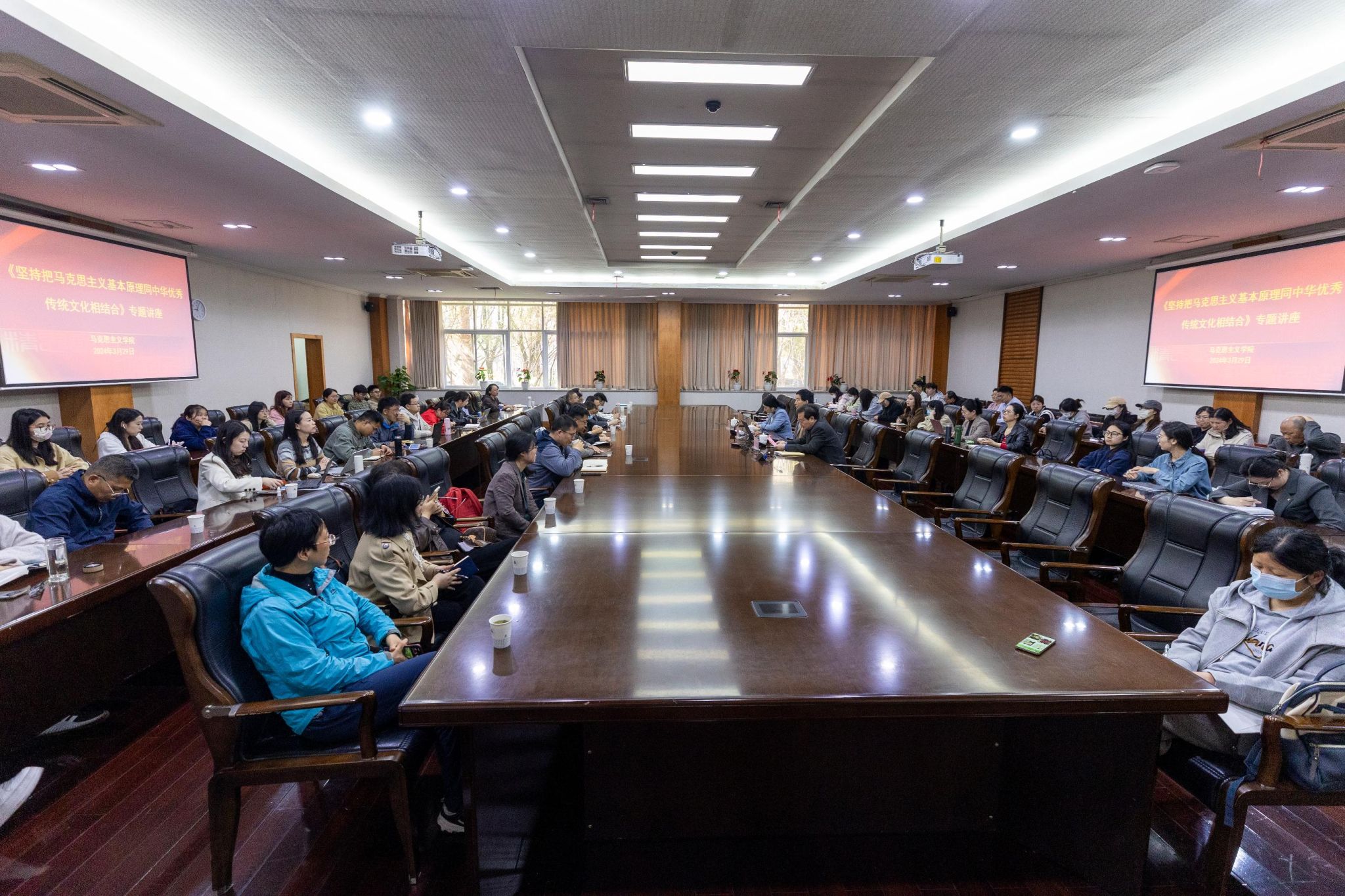 习近平总书记在庆祝中国共产党成立100周年大会上的讲话中指出:“坚持把马克思主义基本原理同中国具体实际相结合、同中华优秀传统文化相结合。”讲座围绕中华优秀传统文化与实事求是思想路线、中华优秀传统文化与德才兼备的干部政策、中华优秀传统文化与指挥革命战争、中华优秀传统文化与辩证思维、中华优秀传统文化与全面建成小康社会等内容展开阐述。分析了马克思主义基本原理与中华优秀传统文化的内在逻辑关联,为师生们带来一场生动的专题讲座。
