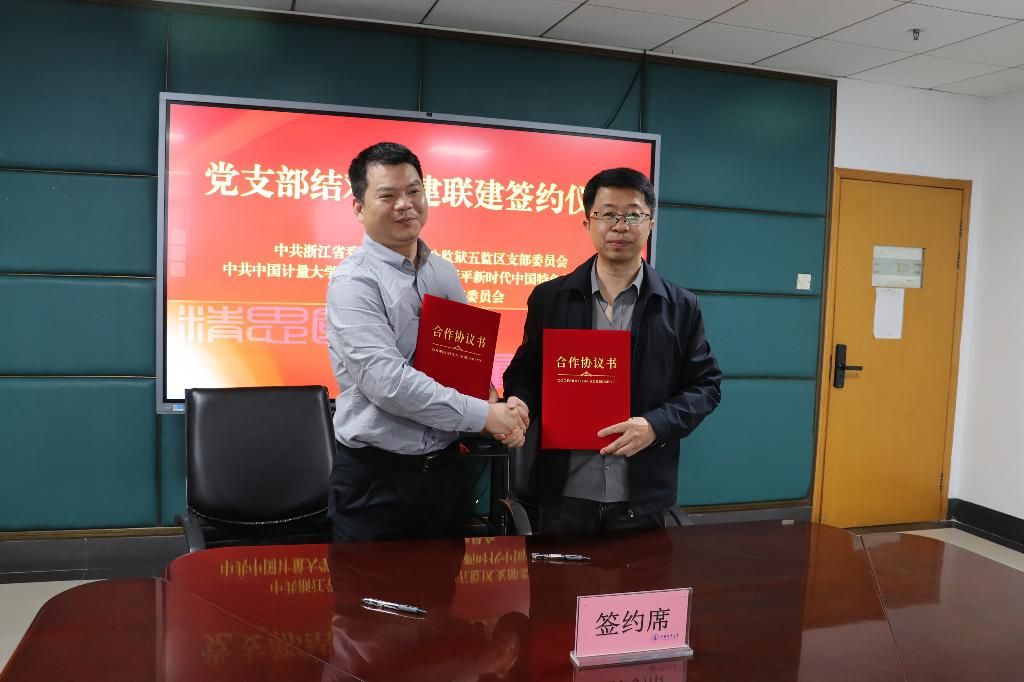 签约仪式上,马克思主义学院习近平新时代中国特色社会主义思想概论教研室支部书记隋金波与浙江省乔司监狱第九分监狱五监区支部书记叶文明相继发言,双方介绍了各自党支部的基本情况和特色,并围绕共筑组织基础、共促队伍建设、共解群众急难、共办实事好事、共谋双方发展等方面的合作进行了探讨和交流,共同签订了《党建结对共建协议书》。