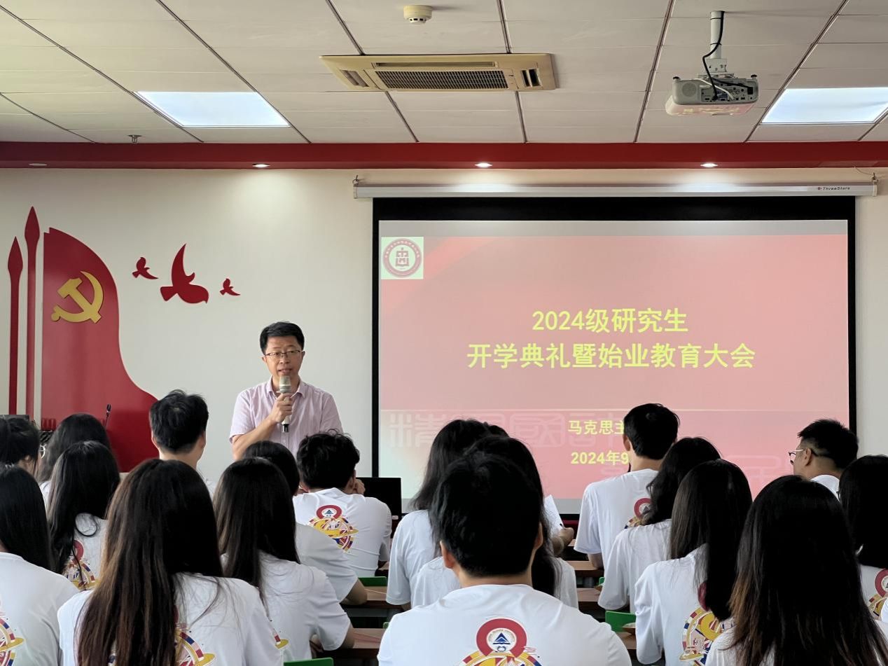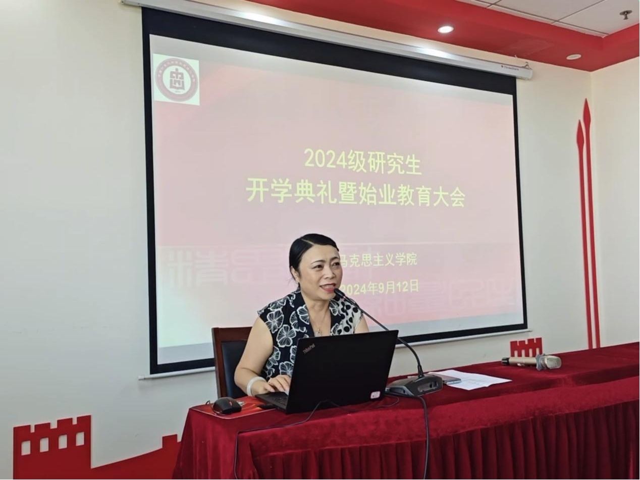 春华秋实满庭芳,栉风沐雨砥砺行。9月12日上午9点,马克思主义学院新生开学典礼暨始业教育大会在图书馆7楼传播中心会议室举办,学院党委书记兰婷、副院长隋金波出席典礼,新生班主任魏丽娜、培养秘书聂庆艳、2024级全体研究生参加典礼。典礼由辅导员李天竹主持。