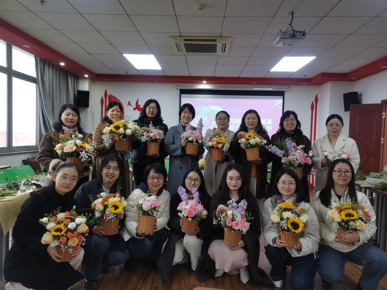 为庆祝第“三八”国际劳动妇女节,丰富女教职工的精神文化生活,提升艺术修养,3月5日上午,马克思主义学院工会在图书馆七楼会议室举办了“庆三八·插花品香”主题活动。在学院兰婷书记的关心指导下,李佼佼副书记和全体女教职工积极参与,共同度过了一个温馨而富有意义的节日。