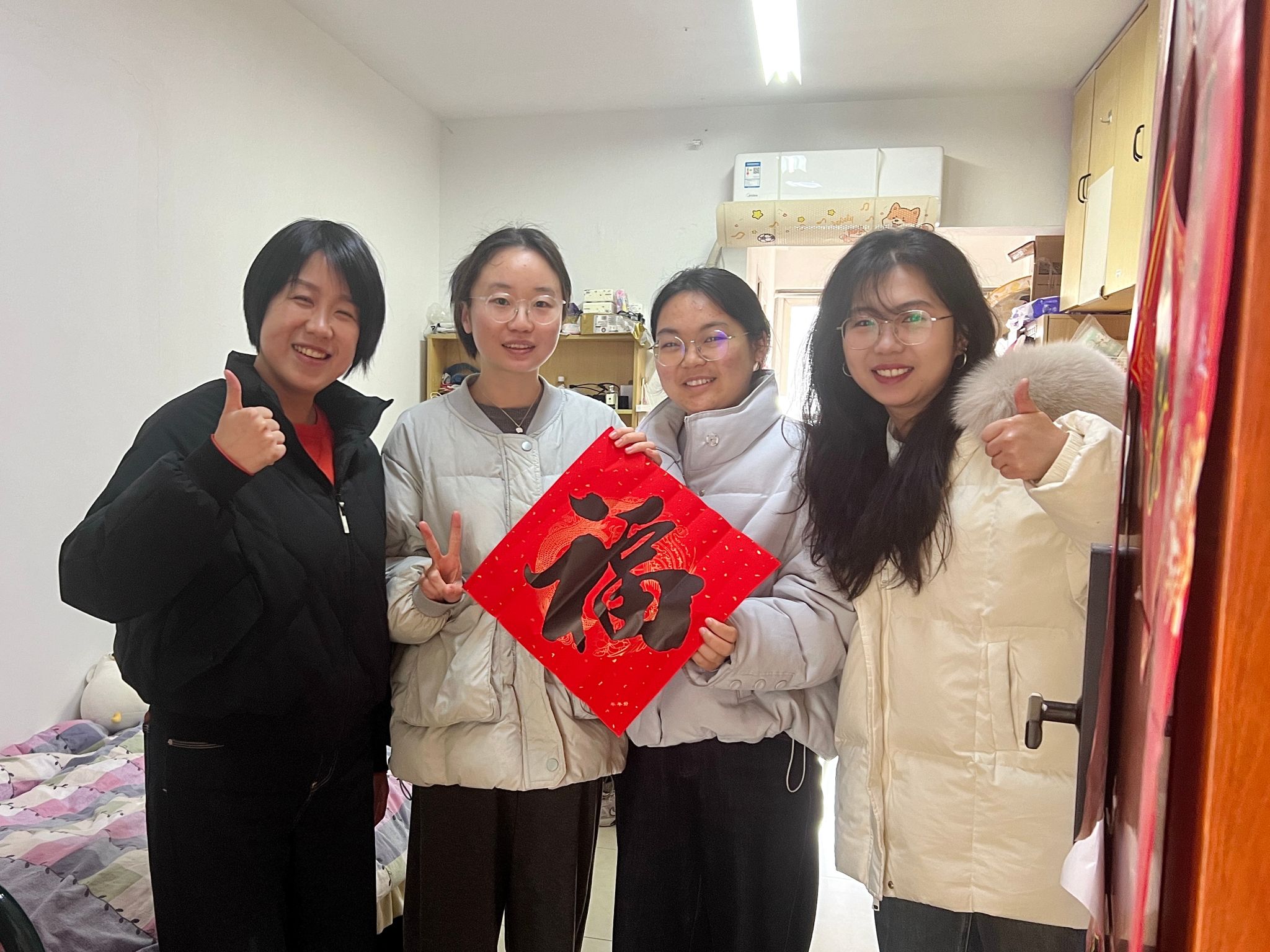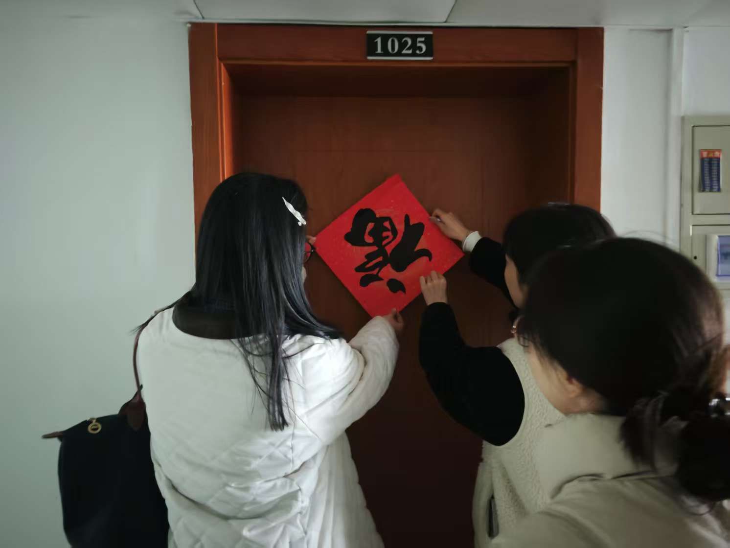 “新学期的课多吗?”“本学期的主要任务是什么呢?”“论文进展如何了?”李佼佼副书记将福字亲手递到学生手中时说道。在走访过程中,李佼佼副书记以贴福为纽带,倾听学生思想心声,也提醒同学们注意宿舍消防安全,将思想关怀与安全护航融于细节。她殷切嘱托同学们要结合现有学习情况和当前就业形势,及时主动与导师沟通交流,尽早确定就业计划,度过一个充实难忘的新学期。