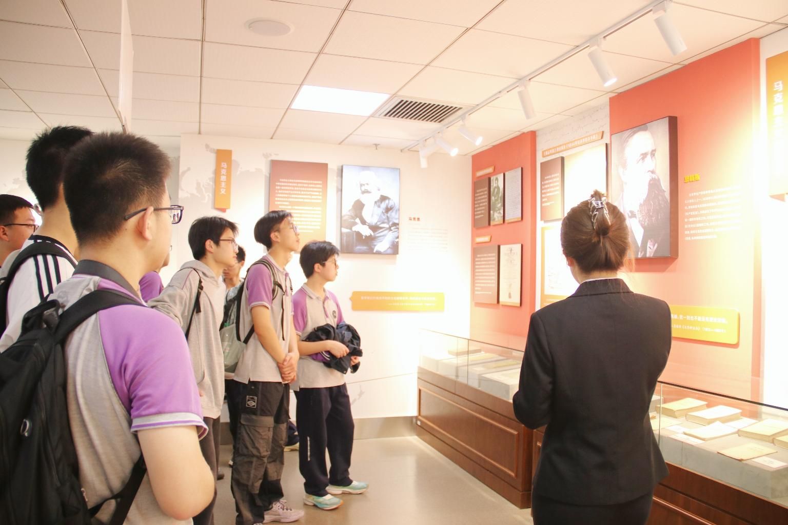 在陈望道蜡像前,“真理的味道非常甜”让绍兴高级中学的同学们驻足品味,深刻体会中国共产党人坚持真理和理想的革命精神。参观“信仰的足迹”“理论的光芒”“实践的硕果”等主题展区时,通过珍贵史料、全息影像、互动屏幕,他们沉浸式地体验了“中国共产党为什么能,中国特色社会主义为什么好,归根到底是马克思主义行,是中国化时代化的马克思主义行”这一深刻论断的最新理论成果。