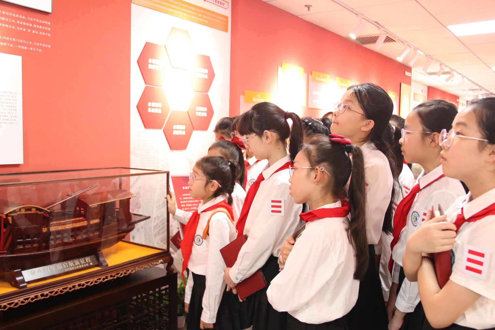 一次跨越年龄的思政对话,一场浸润心灵的信仰启蒙。为贯彻落实习近平总书记关于思政课建设的重要论述,深入推进大中小学思政课一体化建设,2025年3月27日上午,在中国计量大学马克思主义中国化研究与传播中心展馆内举行了一场别开生面的思政课。来自杭州云帆小学与绍兴高级中学的学子们,携手走进马传中心展馆,通过沉浸式观展、互动式讲解、情景化体验等方式,串联起一堂打破学段壁垒的流动思政课,让红色基因在跨学段联动中代代相传。