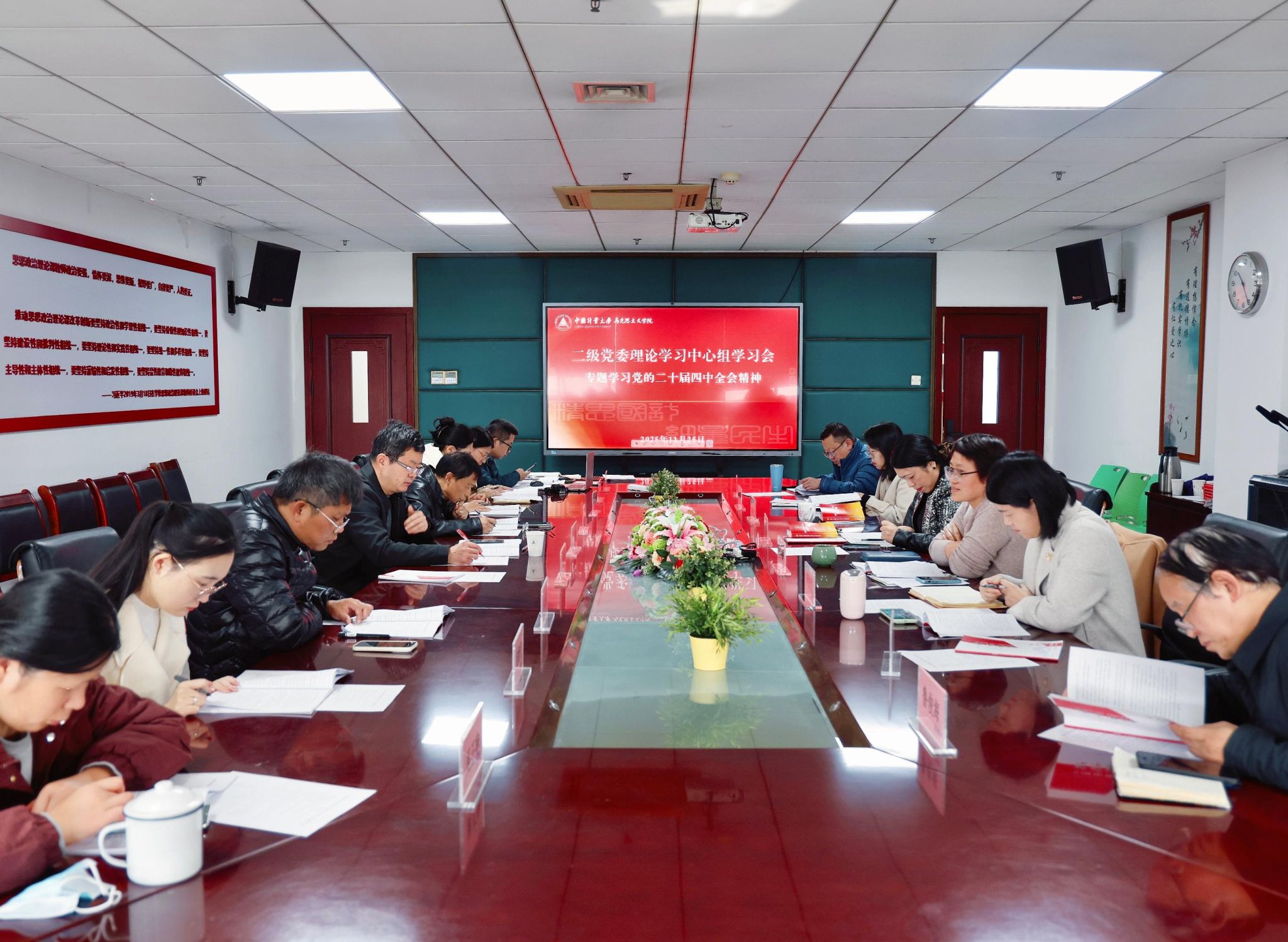 11月25日上午,马克思主义学院党委在图书馆1116会议室召开理论学习中心组专题学习会,专题学习党的二十届四中全会精神。校党委副书记王迪钊到会巡听,学院院长姜羡萍主持会议,中心组全体成员参加会议。