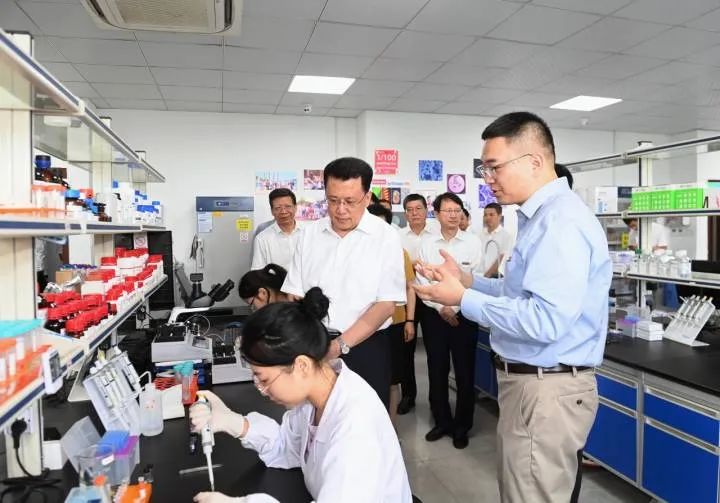 座谈会前,袁家军考察了浙江大学智能医药实验室,并听取了实验室主任、浙大药学院院长顾臻的汇报。该实验室整合分子药剂学、化学生物学等交叉学科前沿,从事蛋白质/核酸递药系统、生物响应材料等方面的研究,取得不少突破。袁家军饶有兴致地观看医药新材料展示,与师生交流。他说,青年时代是最能出科研成果的黄金时代,大家要耐得住寂寞,坚守踏实诚实的科学作风,坚持“四个面向”,加快科技创新、勇攀科学高峰,为浙江打造生命健康科创高地作出更大贡献。