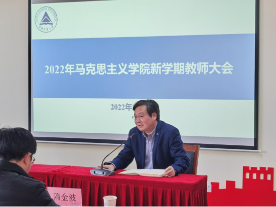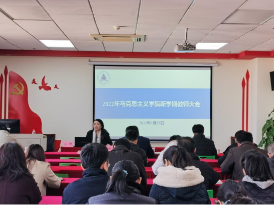 2月25日,马克思主义学院在传播中心院党员之家召开全体教职工大会,校党委副书记、马克思主义学院院长程刚出席会议,学院全体教职工参加会议,会议由党总支书记兰婷主持。