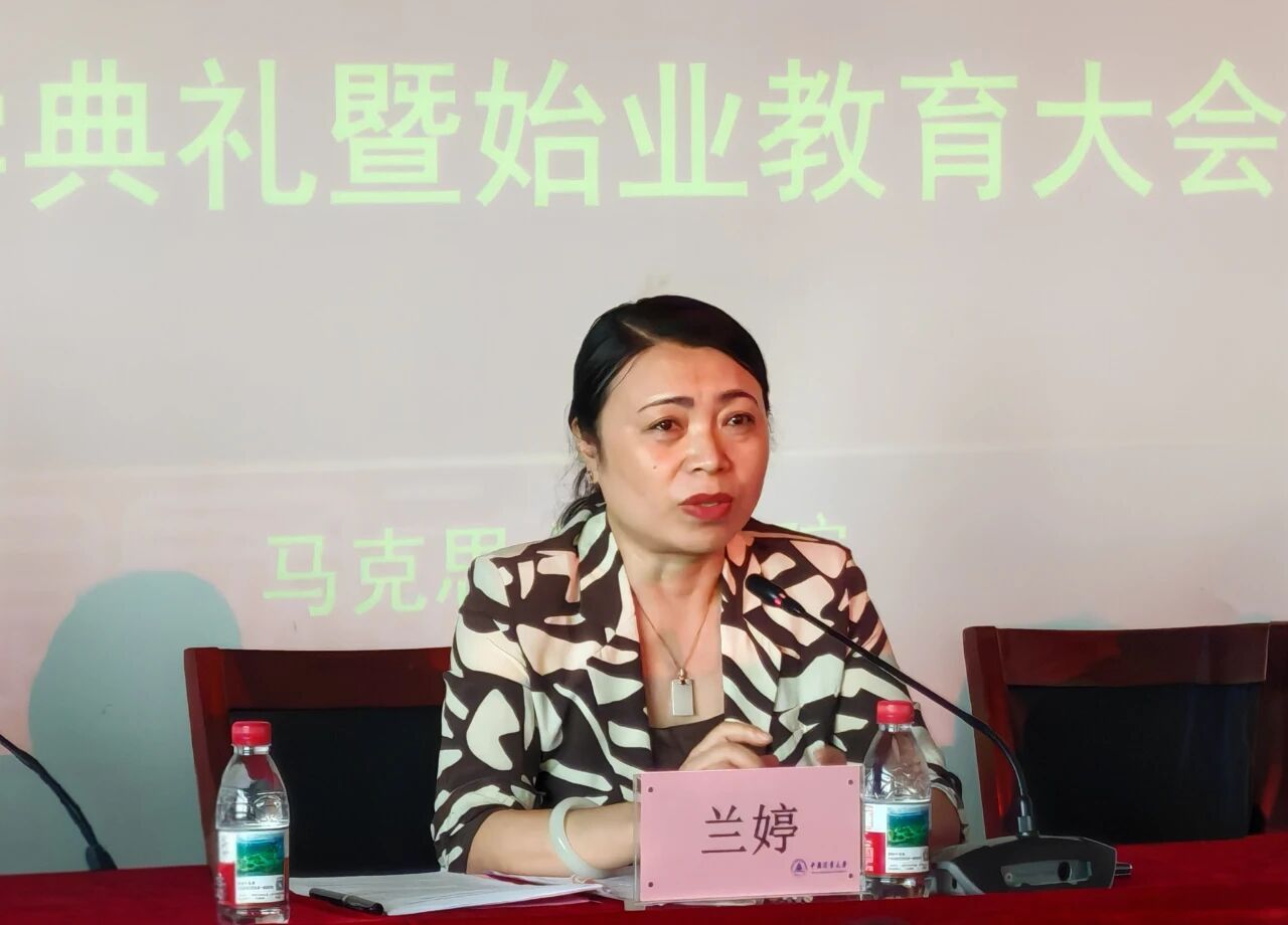 党委书记兰婷代表学院欢迎新生,她指出,今年是中国人民抗日战争暨世界反法西斯战争胜利80周年,伟大抗战精神与马克思主义理论一脉相承,赋予相聚特殊意义。她对新生提出四点期望,希望大家信仰坚定,以马克思主义中国化时代化最新成果武装头脑;品行高尚,承先辈爱国情怀与民族气节;脚踏实地,将理论付诸于实践;勇于创新,以扎实功底勇探学科前沿。最后,她嘱托新生传承“明德笃实,精益求精”院训,坚定信仰、德才兼修,以学识为翼、以实践为帆,在马克思主义理论的学习与探索中不断前行。