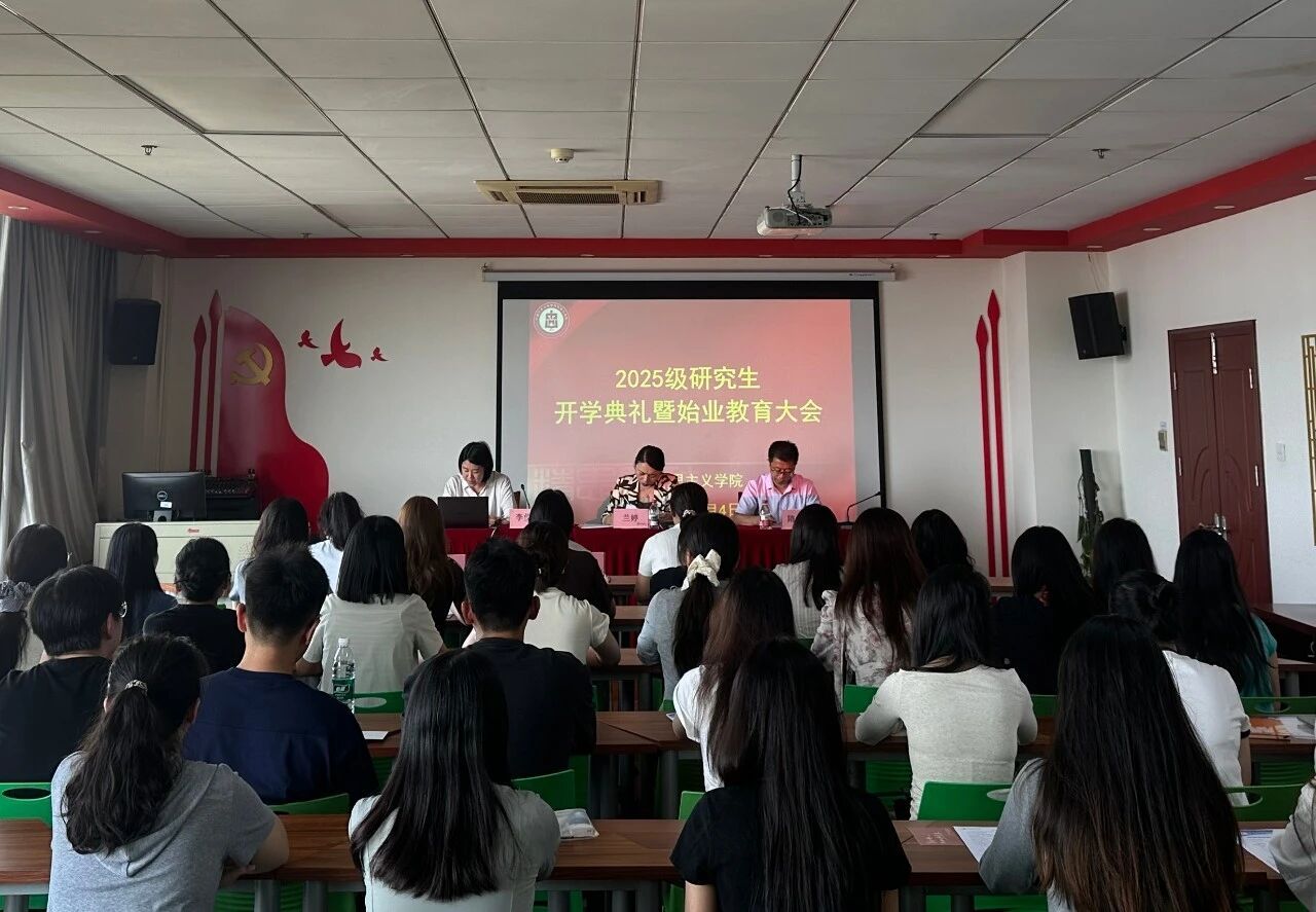 9月4日下午,马克思主义学院2025级新生开学典礼暨始业教育大会在图书馆七楼沙龙室召开,学院领导班子、研究生教研室主任、新生班主任、辅导员,2025级全体研究生参加典礼。