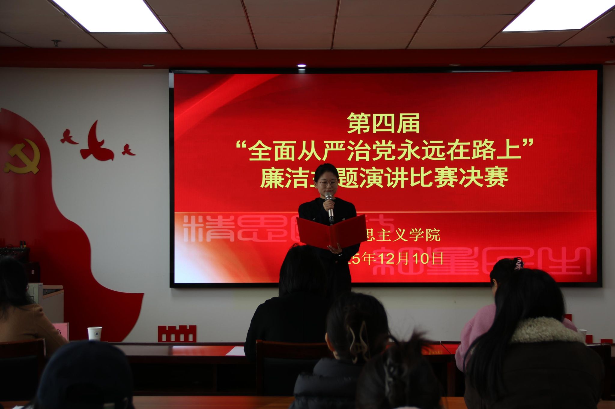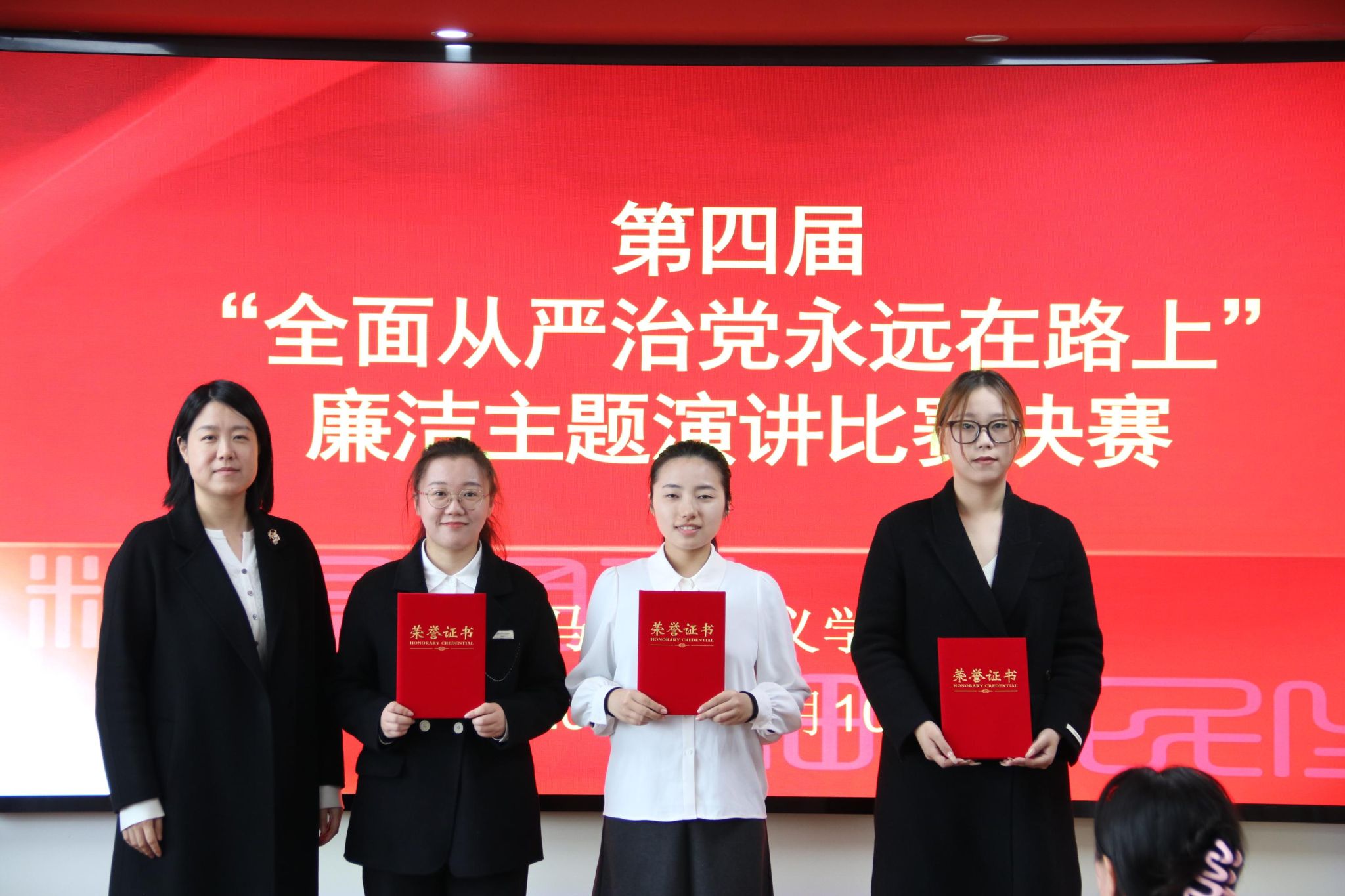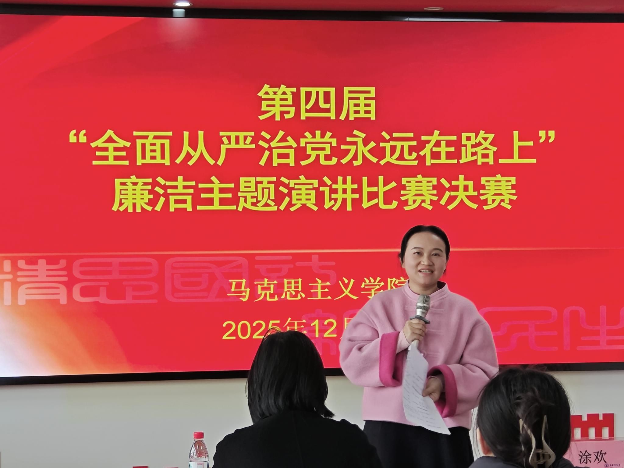 冬意渐浓,初心愈炽。为深入学习贯彻党的二十届四中全会精神,引导青年学子筑牢思想防线、厚植清廉根基,12月10日上午10点,马克思主义学院在图书馆7楼学术沙龙室举办第四届“全面从严治党永远在路上”主题演讲比赛。校纪检监察室主管涂欢、学院党委副书记、纪委书记李佼佼、纪委委员聂庆艳应邀担任评委。