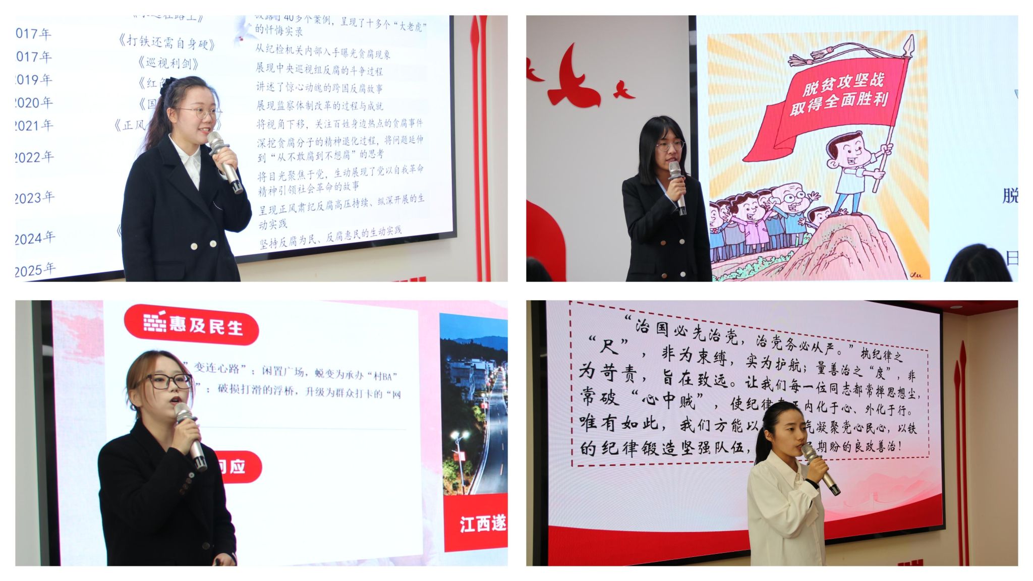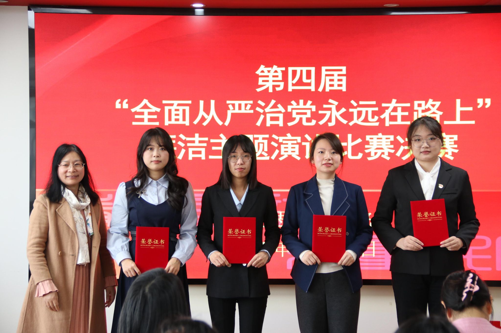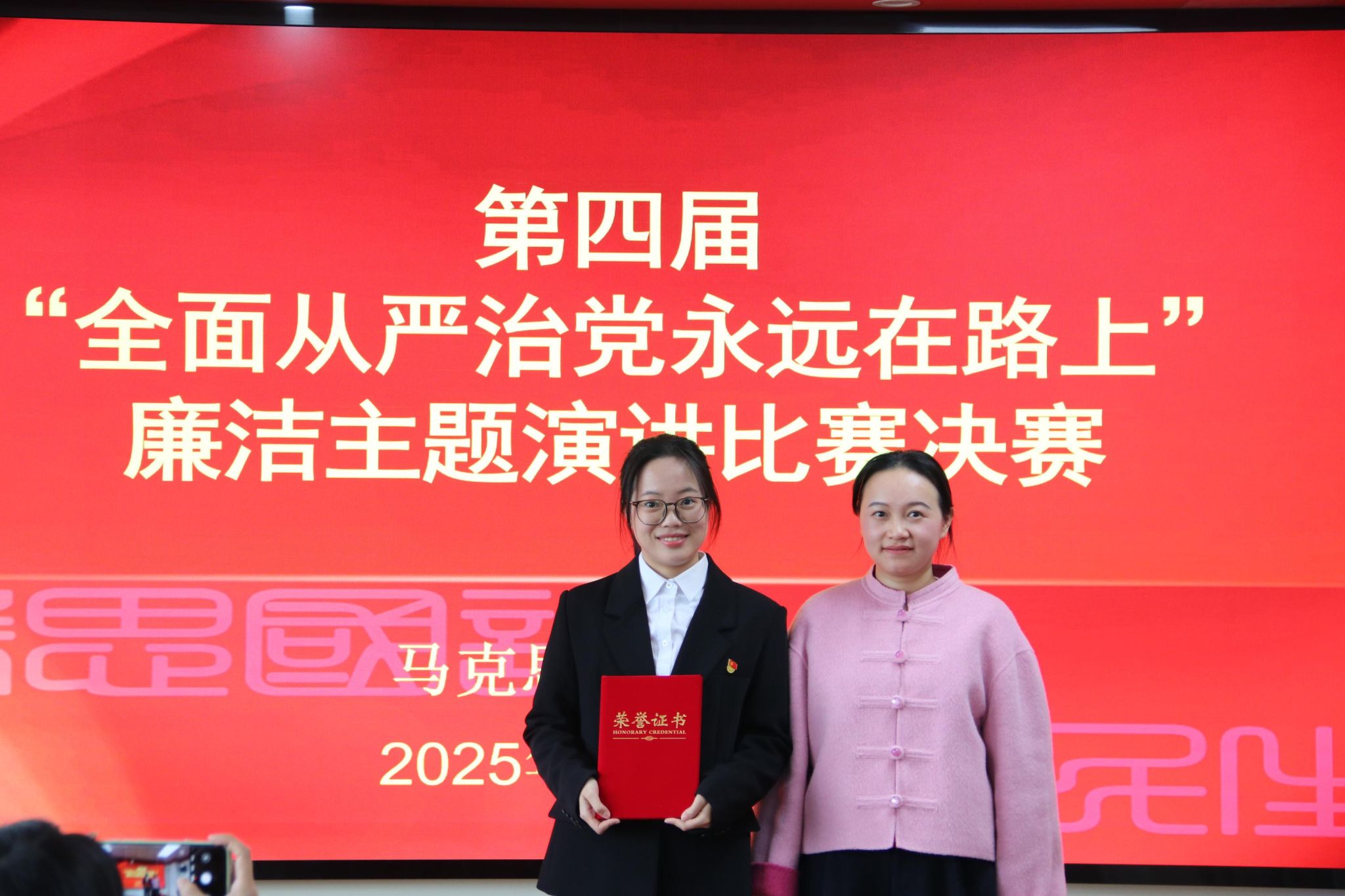 冬意渐浓,初心愈炽。为深入学习贯彻党的二十届四中全会精神,引导青年学子筑牢思想防线、厚植清廉根基,12月10日上午10点,马克思主义学院在图书馆7楼学术沙龙室举办第四届“全面从严治党永远在路上”主题演讲比赛。校纪检监察室主管涂欢、学院党委副书记、纪委书记李佼佼、纪委委员聂庆艳应邀担任评委。