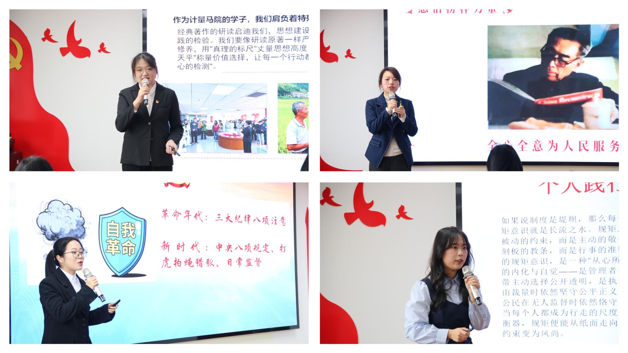 以赛促学,让廉洁思想入脑入心;以讲促行,推动青年学子将廉洁自律转化为立身行事的自觉。据悉,中国计量大学马克思主义学院坚持抓紧抓实廉洁教育工作。连续四年举办“全面从严治党永远在路上”主题演讲比赛,并成立“青风宣讲团”,面向校内外开展常态化宣讲近百场。未来,学院将持续推动清廉马院建设走深走实,让崇廉尚洁之风常驻校园。